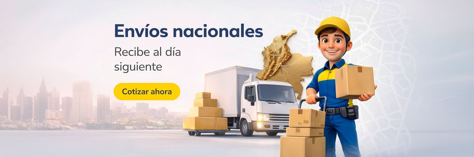 Despacha a cualquier ciudad del país con tarifas competitivas y tiempos confiables. Envíos nacionales rápidos con entregas en aproximadamente 24 horas.