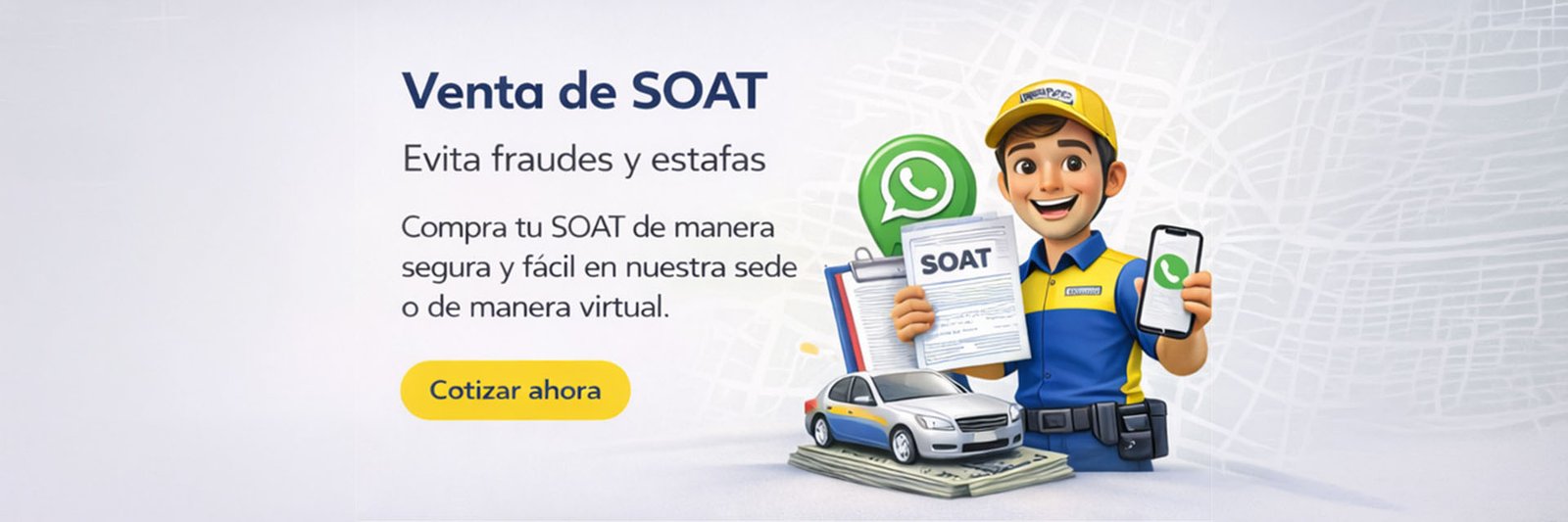 Te ofrecemos la venta del seguro obligatoria (SOAT) para todo tipo de vehículo, cómpralo de manera física y/o virtual fácil y seguro con nosotros.
